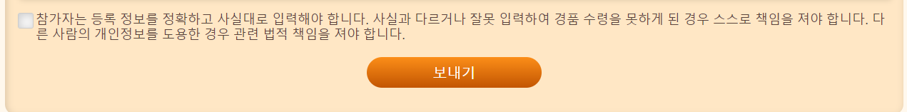 ※ 해당 대상자는 추첨 또는 이벤트 참여 시, 로그인 정보의 정확성과 진정성을 보장해야 하며, 허위 또는 오류로 인해 경품 추첨 또는 수령이 불가능한 경우 스스로 책임을 져야 합니다. 기타 개인 정보를 도용한 경우 관련 법령에 의거하여 법적 책임을 져야 합니다.