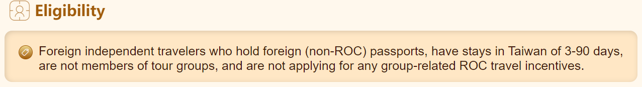 대만(중화민국) 이외 국가의 여권 소지자로 대만에 입국하여 3~90일간 체류하며 단체 여행에 참가하지