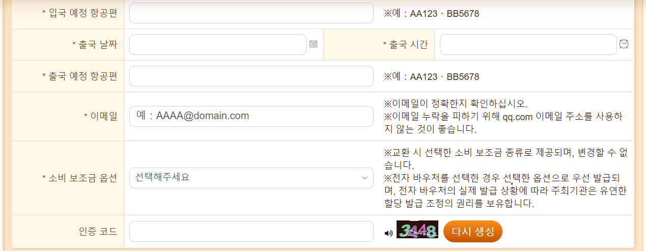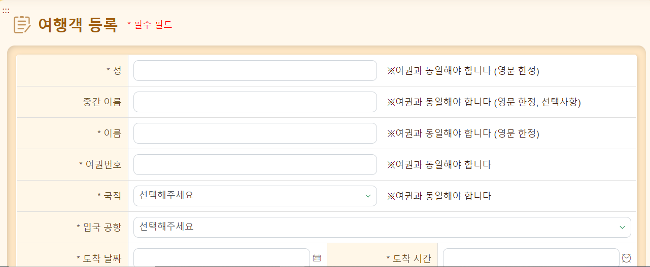 - 해당 신청서는 신청서에 입력한 도착 당일에만 유효하기 때문에 도착 일이 다를 경우에는 참가할 수 없습니다.