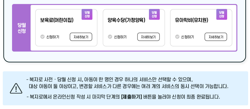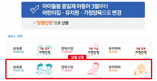 보육료, 유아학비, 양육수당 당월신청하는 방법