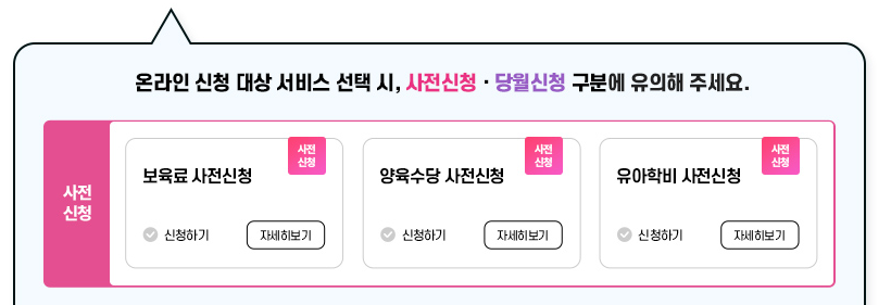 2024년 보육료, 유아학비, 양육수당 사전신청방법