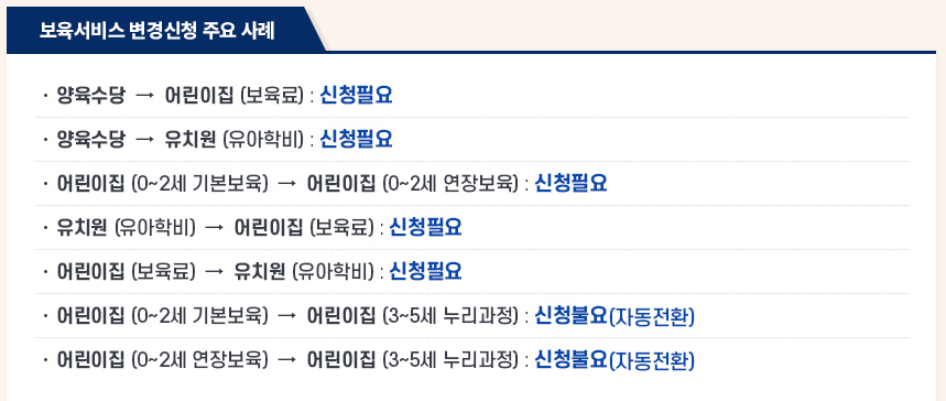 어린이집(0~2세 기본교육) → 어린이집(3~5세 누리과정) : 신청불요(자동전환)