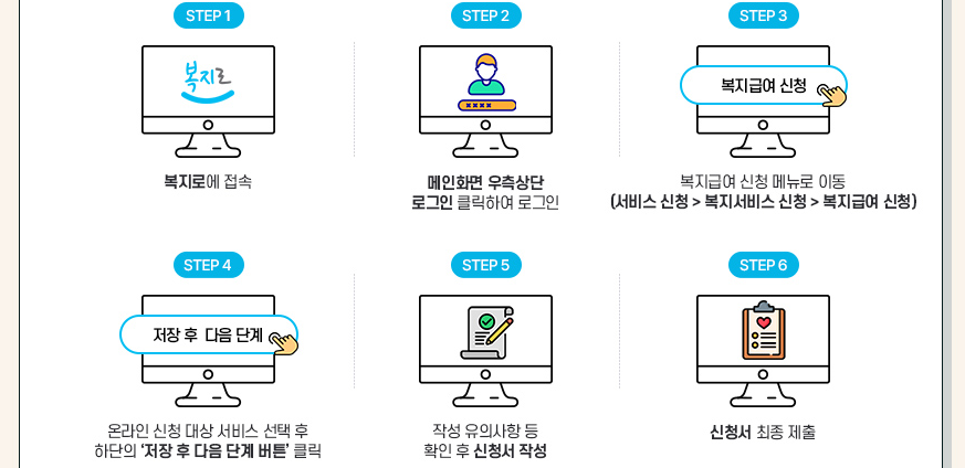 ▶사전신청방법 >>> PC, 스마트폰에서 복지로 누리집 온라인 신청, 또는 복지로 모바일 앱으로 신청가능합니다.